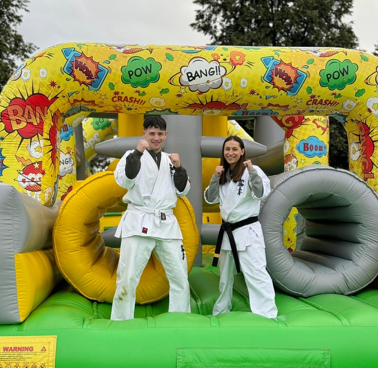 Sekmadienį Domeikavoje šurmuliavo pramogų fiesta! Batutai, žaidimai, muzika, o tarp viso to ir karate stotelė
